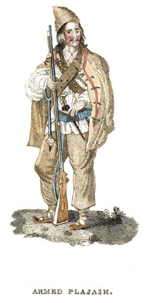 The Walachian styles himself a Roman in his language, which is a medley of corrupt Latin and Illyrian; but it is very rarely that Roman valour can be discovered in him. He dislikes the military profession, and it is very long before he becomes habituated to its hardships: but yet none endures with greater fortitude, sufferings and privations which cannot be avoided. His wants are very moderate. He cheerfully and thoughtlessly consumes what he has as long as it lasts, and afterwards fasts with exemplary resignation. He does not always duly respect the property of others, but cheerfully shares what he possesses with those who need relief.