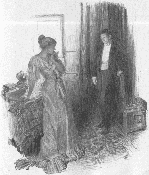 "You--are going away?" She was the first to speak. Her voice was, in the least, uncertain.