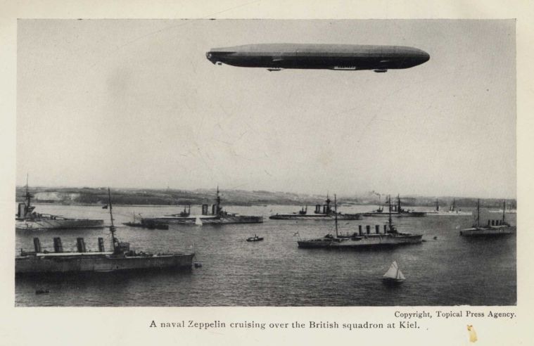 Kiel Week thenceforward was an endless round of Anglo-German pleasantries. A Zeppelin, harbinger of coming events, hovered over the British squadron at intervals, her crew wagging cheery greetings to the ships while acquainting themselves at close range with the looks of English dreadnoughts from the sky. British sailormen paid fraternal visits to German dreadnoughts and German sailormen returned their calls. The crew of the Ajax gave a music-hall smoker in honor of the crew of the big battle-cruiser Seydlitz, the Teuton tars being no little awestruck by the complacency with which two heavyweight British boxers pummeled each other a sea-green for six rounds and then smilingly shook hands when it was all over. Germans never punch one another except in gory hate, and they seldom fight with their fists. The Kaiser was host nightly at splendid State dinners in the Hohenzollern and Vice-Admiral Warrender returned the fire with state banquets aboard the King George V. The atmosphere was fairly thick with brotherly love. It was not so much as ruffled even when the octogenarian Earl of Brassey, who wards off rheumatism by an early morning pull in his row-boat, was arrested by a German harbor-policeman as an "English spy" for approaching the forbidden waters of Kiel dockyard. German diplomacy was typically represented by Lord Brassey's zealous captor, for the master of the famous Sunbeam brought that venerable craft to Kiel to demonstrate that Englishmen of his class sincerely favored peace, and, if possible, friendship with Germany. Wilhelmstrasse tact was exemplified again when, by way of apology to Lord Brassey, the Kiel police explained that there was, of course, no intention of charging him with espionage. The policeman who arrested him merely thought he was nabbing a smuggler! At dinner that night in the Hohenzollern, the Kaiser chuckled jovially at Lord Brassey's expense. England's greatest living marine historian stole away from Kiel with the Sunbeam in the gray dawn of the next day, with new ideas of German courtesy to the stranger within the gate. He had intended to stay longer.