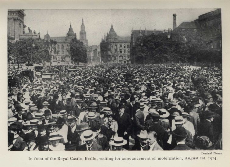These things we chatted and canvassed, irresponsibly, on Utowana's immaculate deck. All of us were persuaded of the imminency of a crisis in Austrian-Serbian relations in consequence of Princip's crime. But I am quite sure not a soul of us held himself capable of imagining that, because of that remote felony, Great Britain and Germany would be at war five weeks later. Beyond us spread the peaceful panorama of British and German war-craft, anchored side by side, and the thought would have perished at birth.