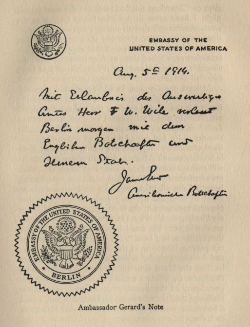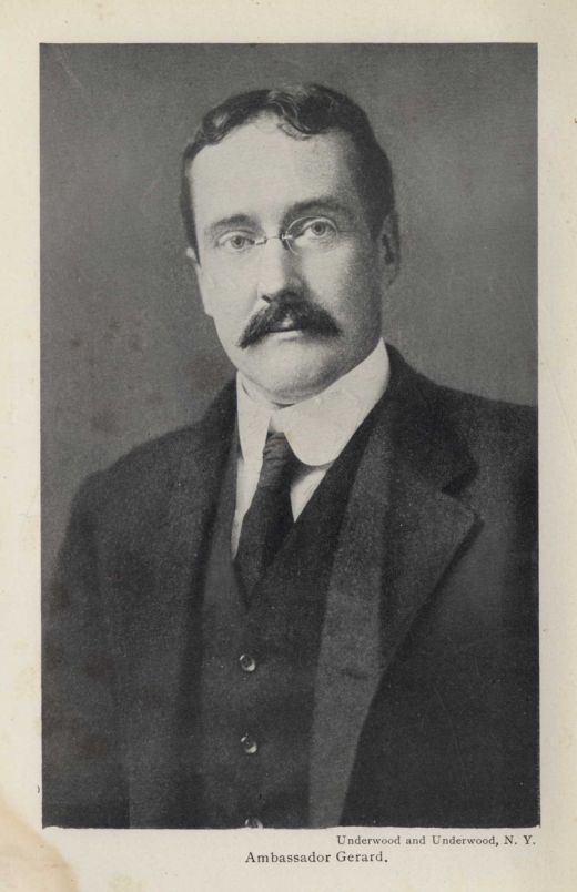 A party of Americans flocked together at the entrance to the hotel to exchange low-spoken views on the all-pervading topic. There was big Lieutenant-Commander Walter R. Gherardi, our wide-awake Berlin Naval Attaché, resplendent in gala gold-braided uniform, and Mrs. Gherardi, who had motored me around the environs of Kiel that morning; Albert Billings Ruddock, Third Secretary of the Embassy, and his pretty and clever wife; and Lanier Winslow, Ambassador Gerard's private secretary, his effervescent good nature repressed for the first time I ever remembered observing it in that unbecoming and unnatural condition. Secretary Ruddock's father, Mr. Charles H. Ruddock, of New York, completed the group.