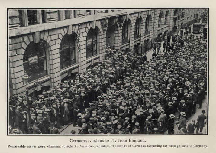 For several days after Congress, at the president's instigation, voted to "accept the gage of battle," there lay neatly folded up in a certain front room of the American Embassy in London a fine, new American flag. It had been put there for a special purpose--to be hoisted at a psychological moment believed to be imminent. Our people in Grosvenor Gardens, in their hearty, imaginative American way, considered that there might possibly be a "demonstration" in welcome of Britain's latest comrade-in-arms. There were visions of a procession, brass bands and cheering crowds; and the spick and span stars and stripes were to be flung to the glad breeze when the "demonstrators" reached the scene and called for a speech from Ambassador Page on the Embassy balcony. Such things happened when Italy and Roumania "came in." Surely history would not fail to repeat itself in the case of "daughter America." But neither procession, bands, cheers nor crowds ever materialized. After all, we could not expect Englishmen to celebrate in honor of the greatest mistake they had ever made in their lives. That would be something more than un-English. It would be a violation of all the laws of human nature.