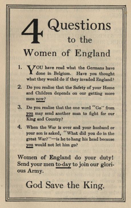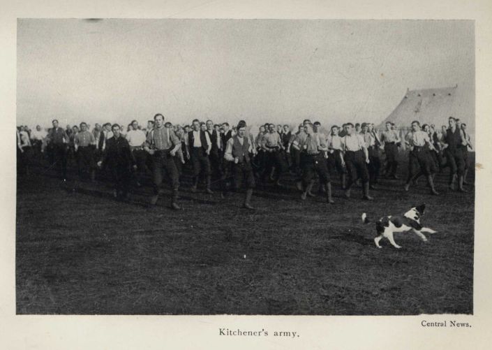 October, 1915. The eighty-third day of the second year of war. A woman, writing in The Times, suggests that England adopt as her national prayer, "God help us win this war." King George V, emerging at length from the No Man's Land of Constitutional Irresponsibility, appeals, stirringly, "to my people" to save the sinking bark of Voluntary military service. It is the calm before the Conscription storm. The Sovereign discourses upon "the grave moment in the struggle" and calls for "men of all classes to come forward and take their share in the fight in order that another may not inherit the free Empire which their ancestors and mine have built." The King hints at "the darkest moment" which, from time immemorial, "has ever produced in men of our race the sternest resolve."