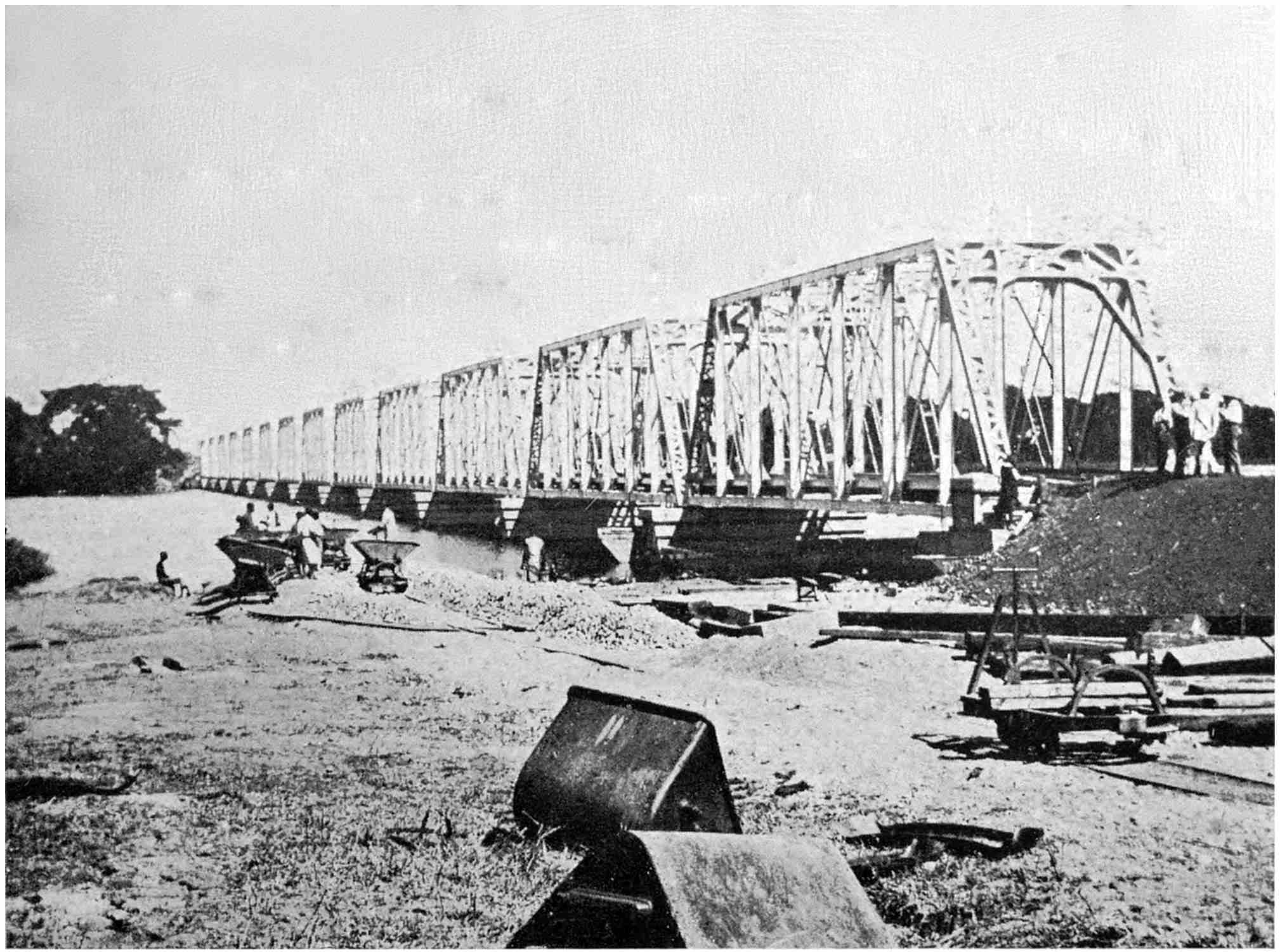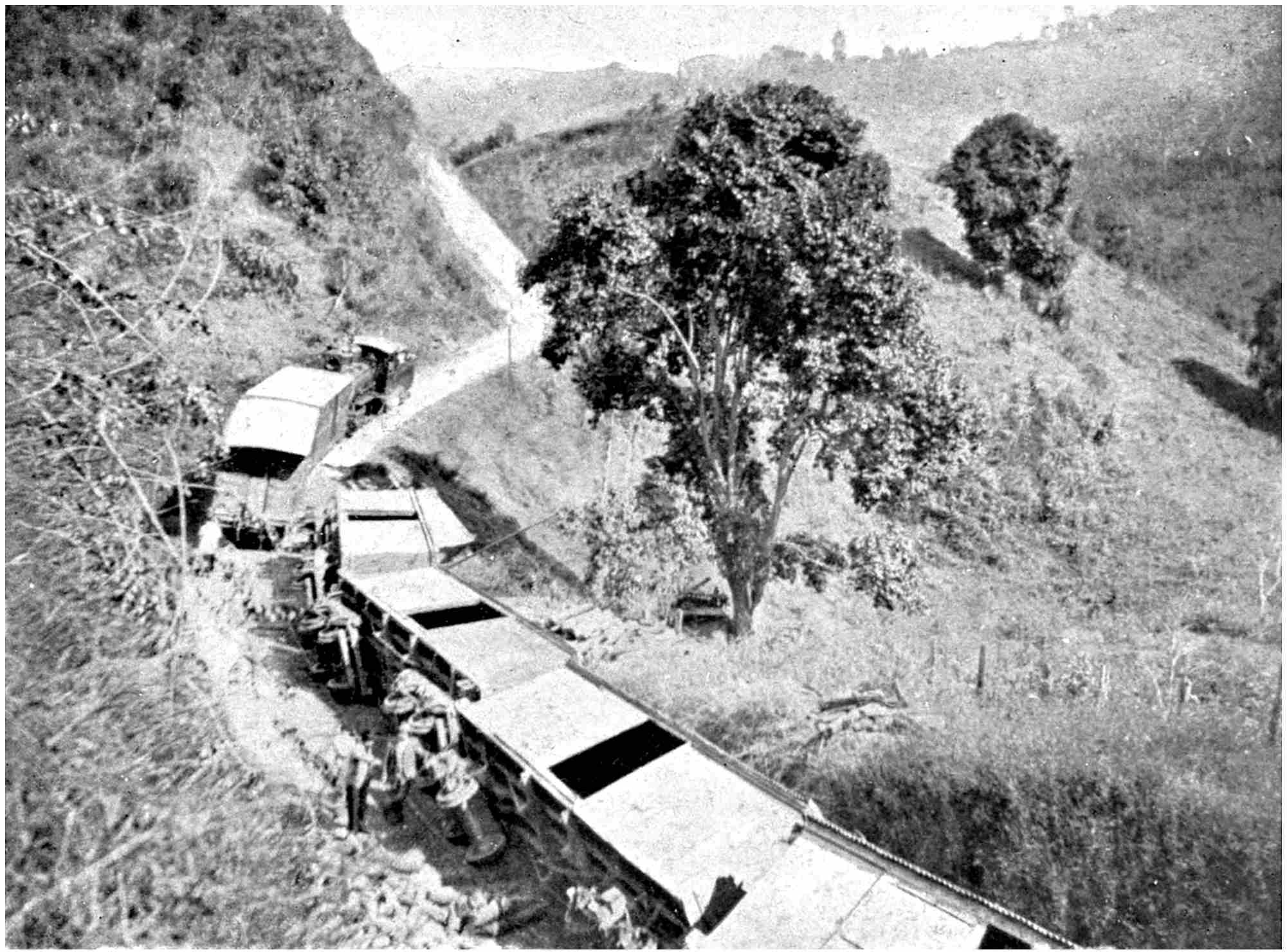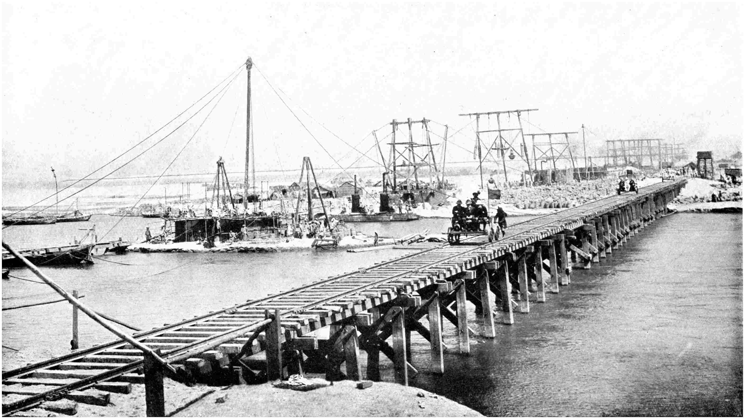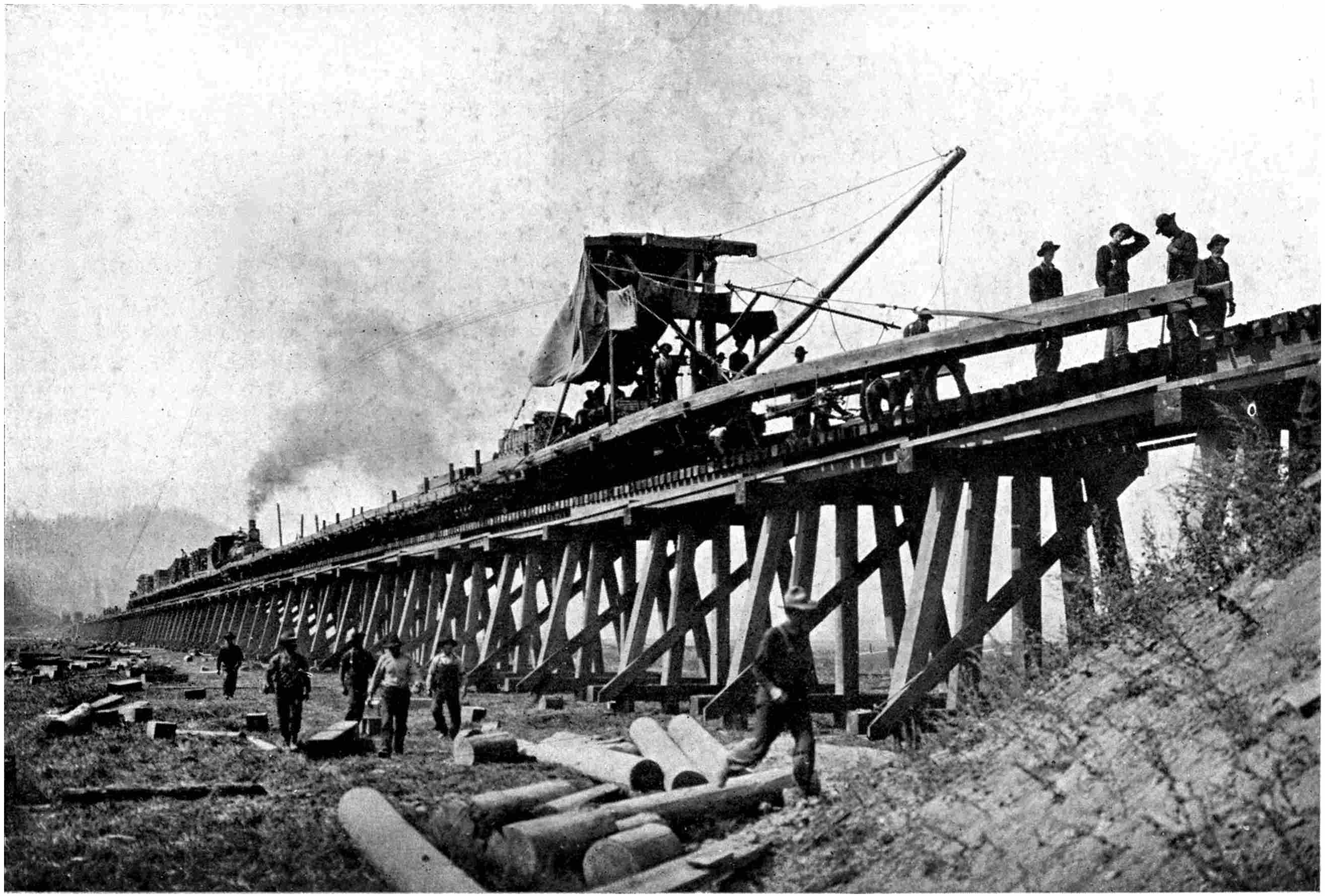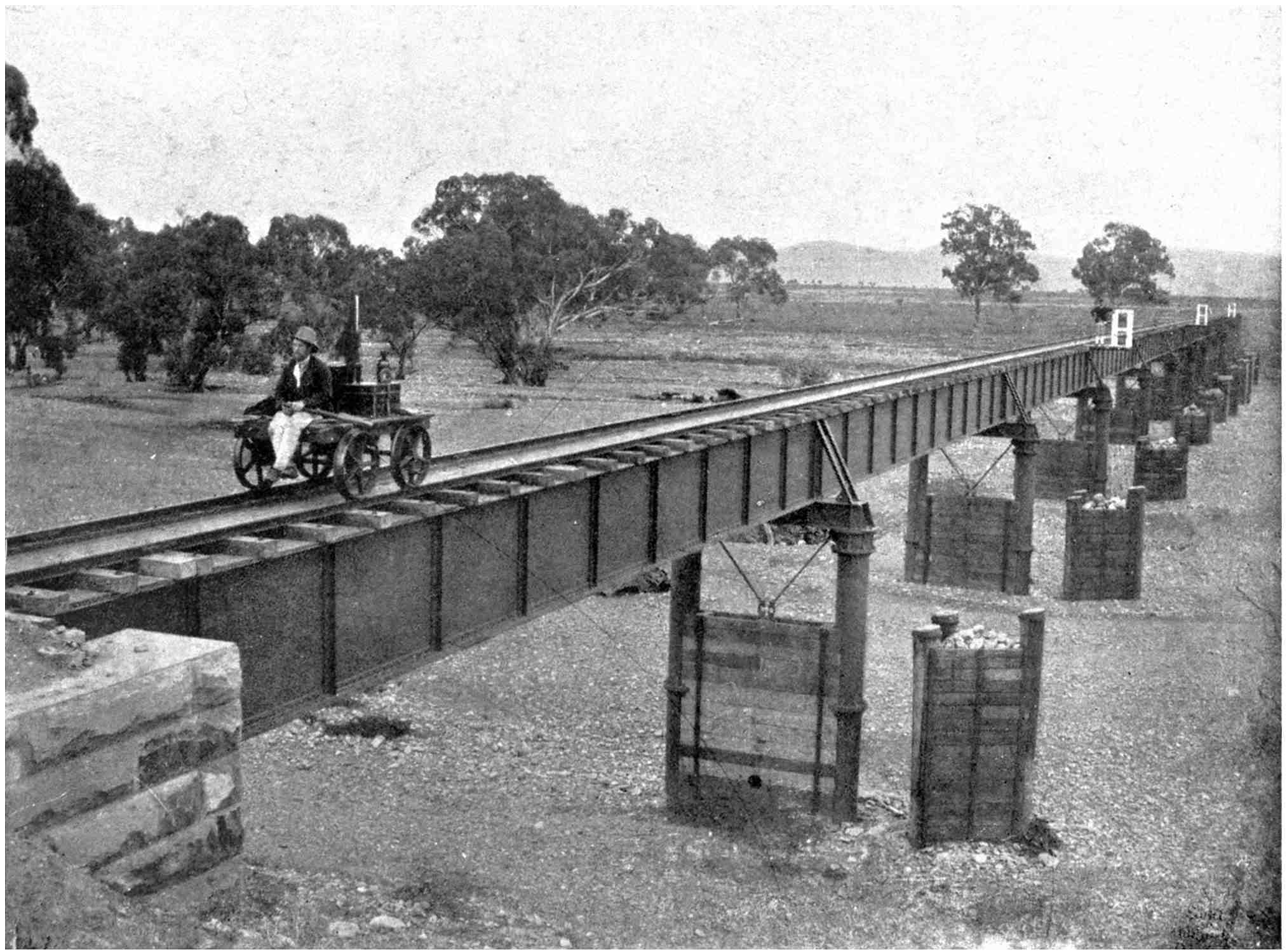 | The track layer, whereby the metals are laid at a speed of 3 or 4 miles a day, crossing a heavy timber trestle | 25 |