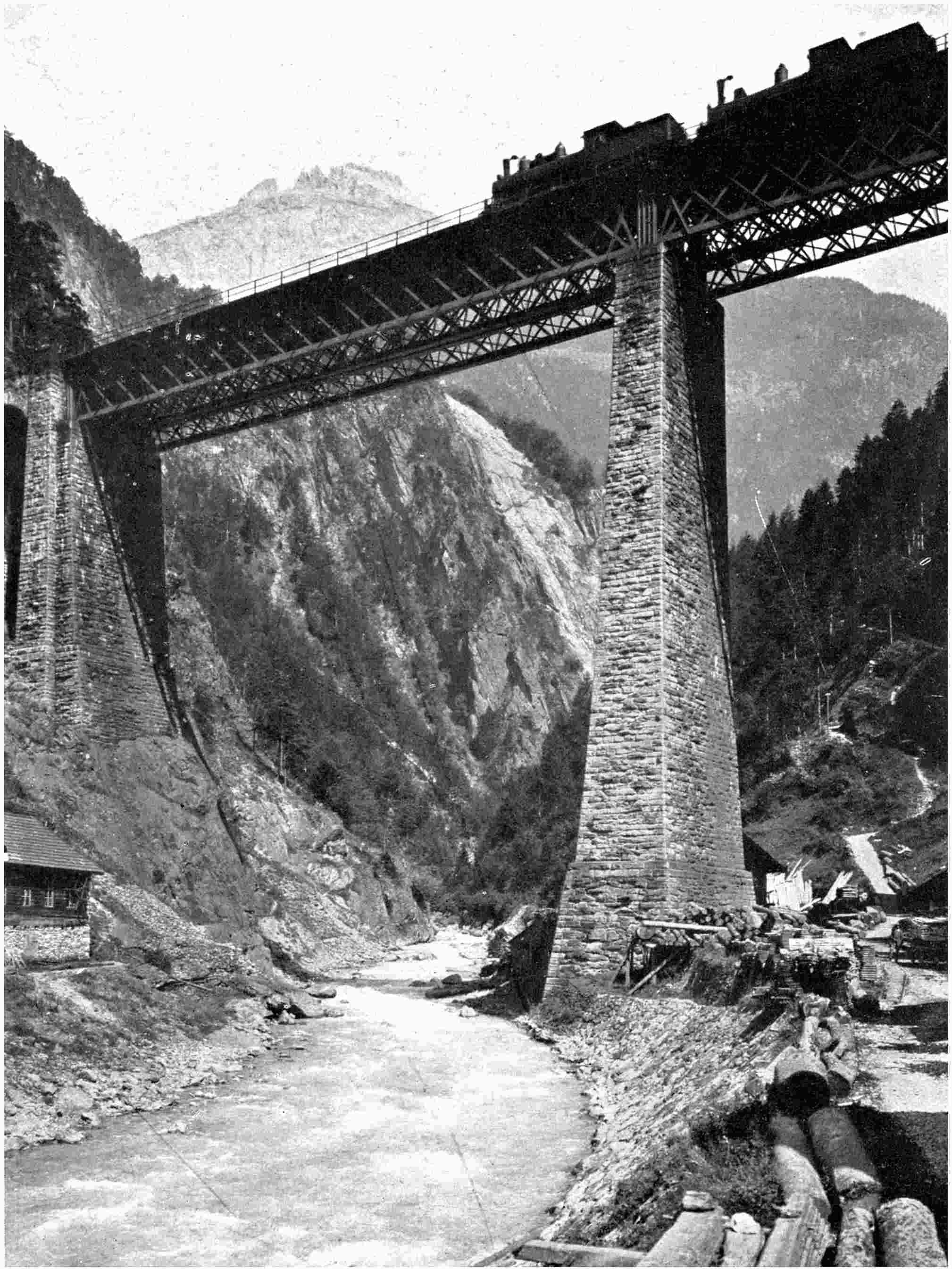 | The lofty Amsteg Bridge, 184 feet high, spanning the Maderan Valley on the St. Gotthard Railway | 37 |