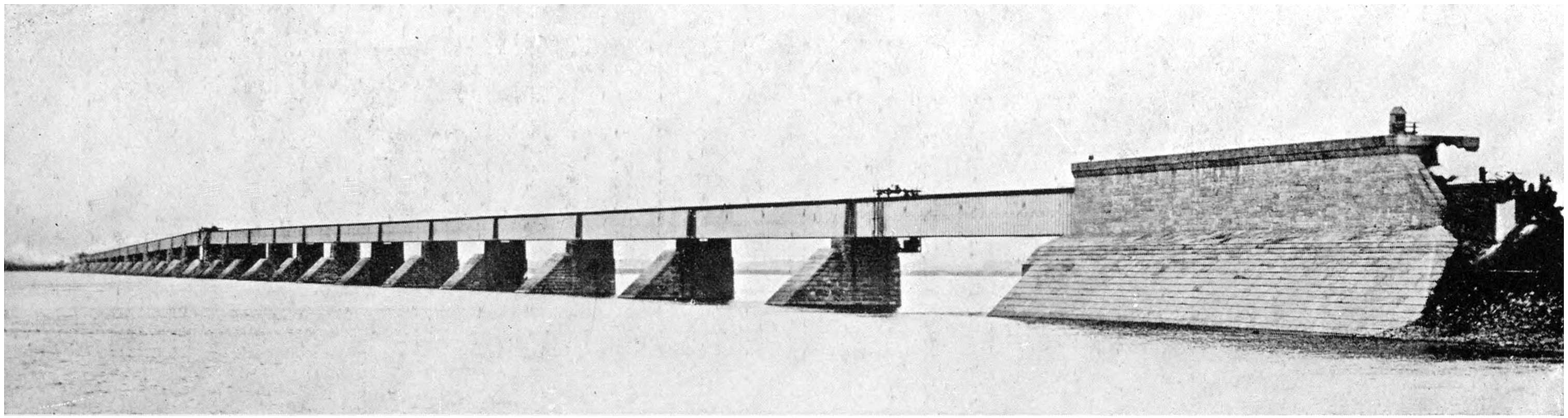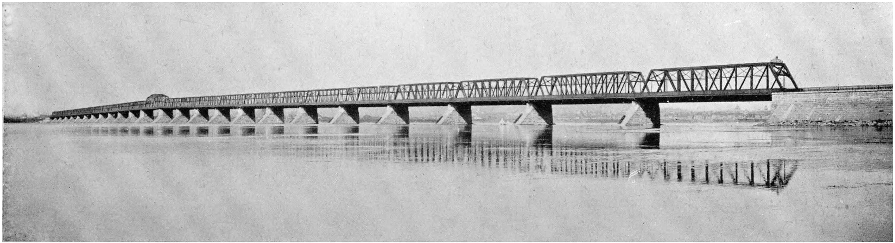 | The massive bridge of the Union Pacific Railway over the Missouri River at Council Bluffs, from which point the first railway across the United States was commenced | 62 |