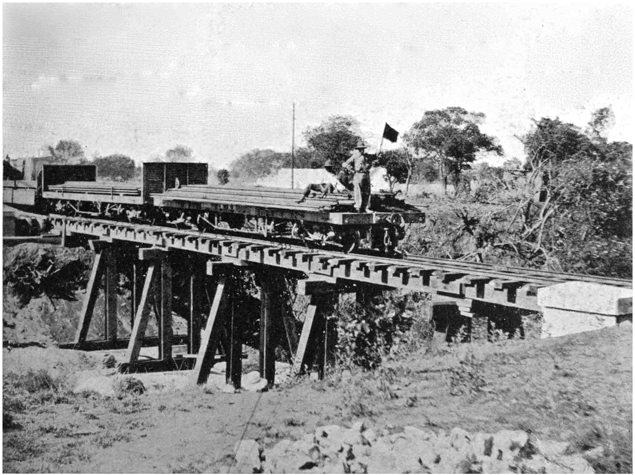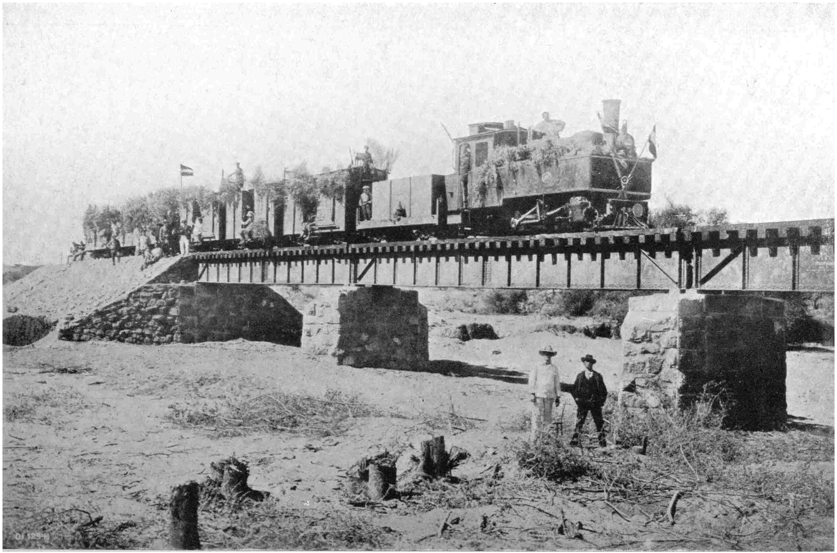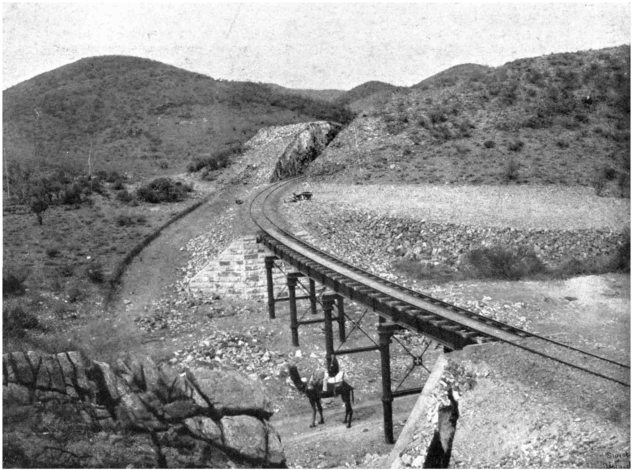 | The passage of the first train, gaily decorated for the occasion, over the “toy-like” Otavi Railway | 81 |
