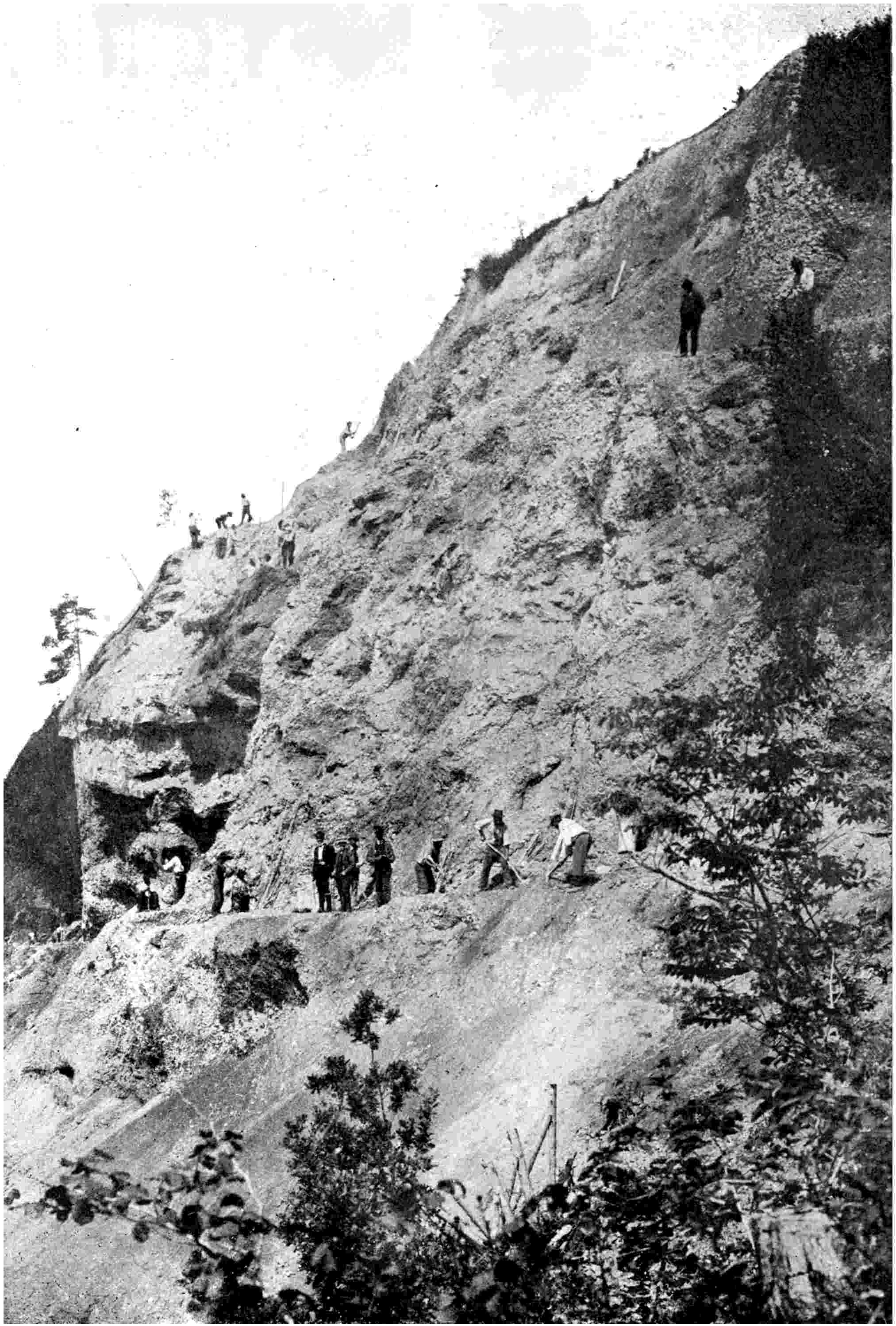 | The workmen cutting and blasting a narrow path on the steep mountain slopes for the Karawanken Railway | 92 |
