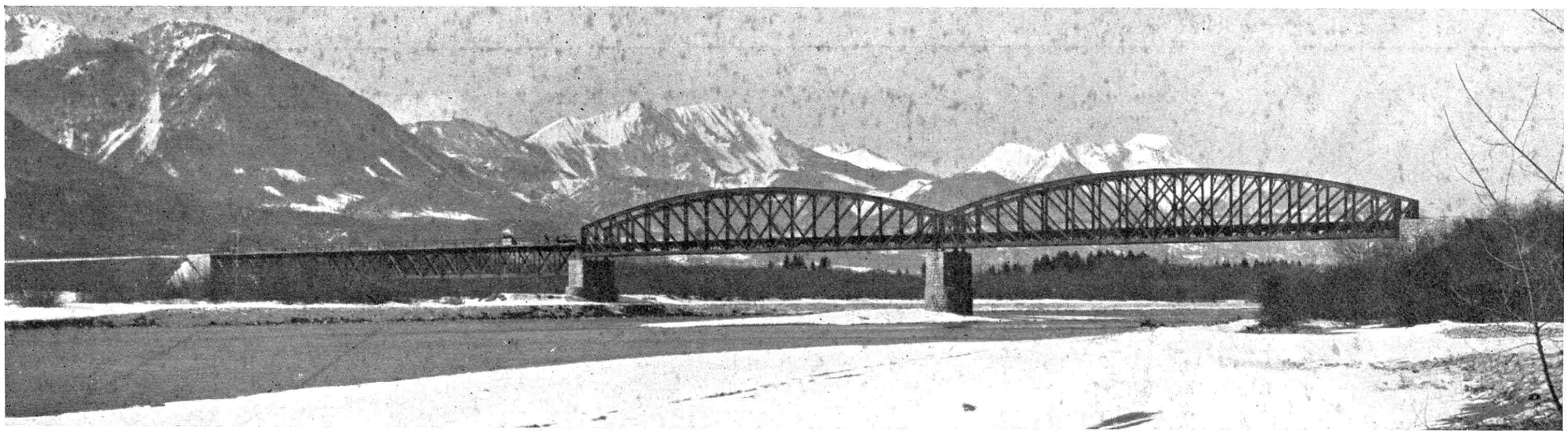 | The massive steel bridge which carries the railway across the Drave River to approach the tunnel through the Karawanken range in the background | 93 |