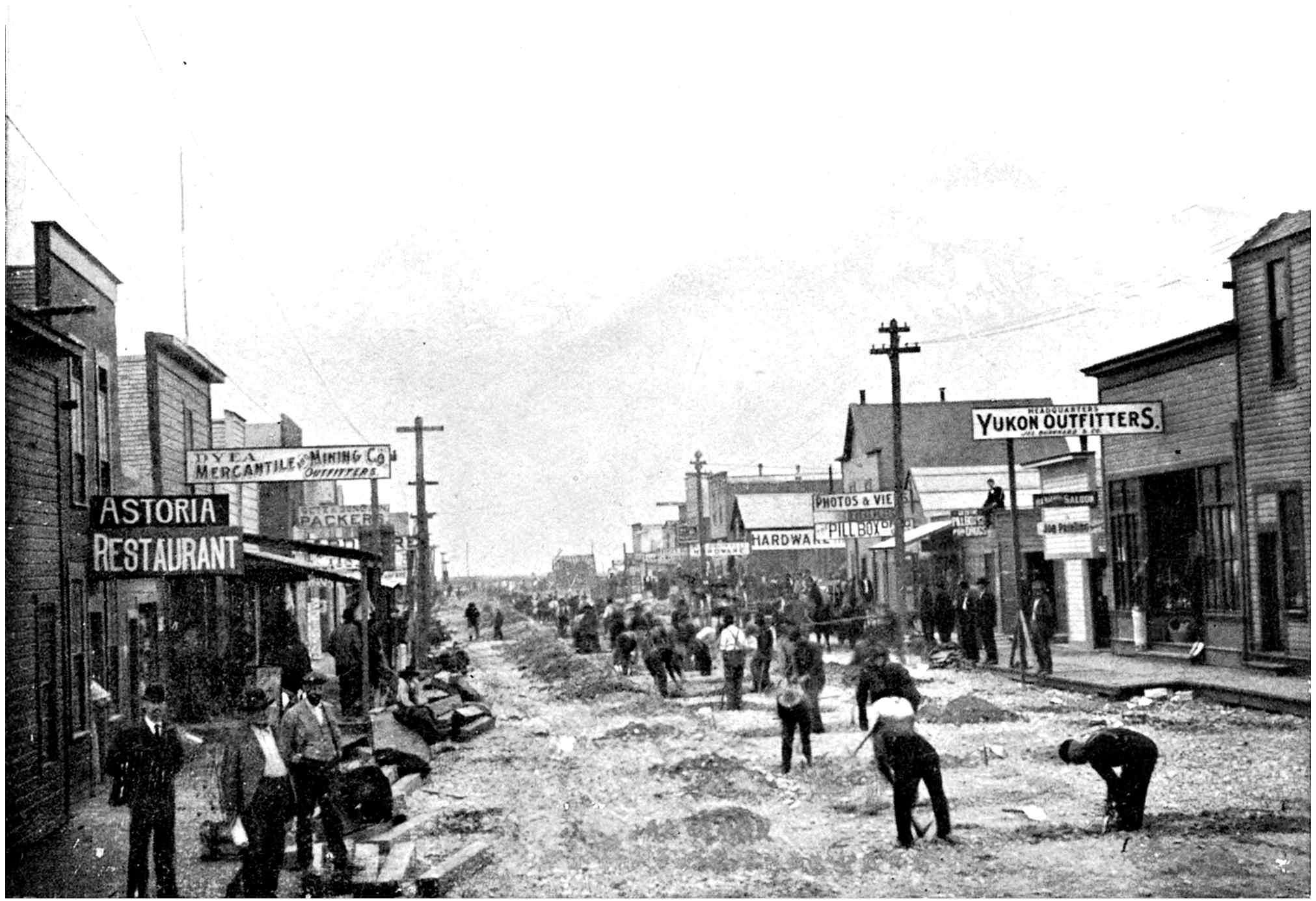 | The first hour’s work: navvies preparing the grade along the main street of Skaguay | 106 |