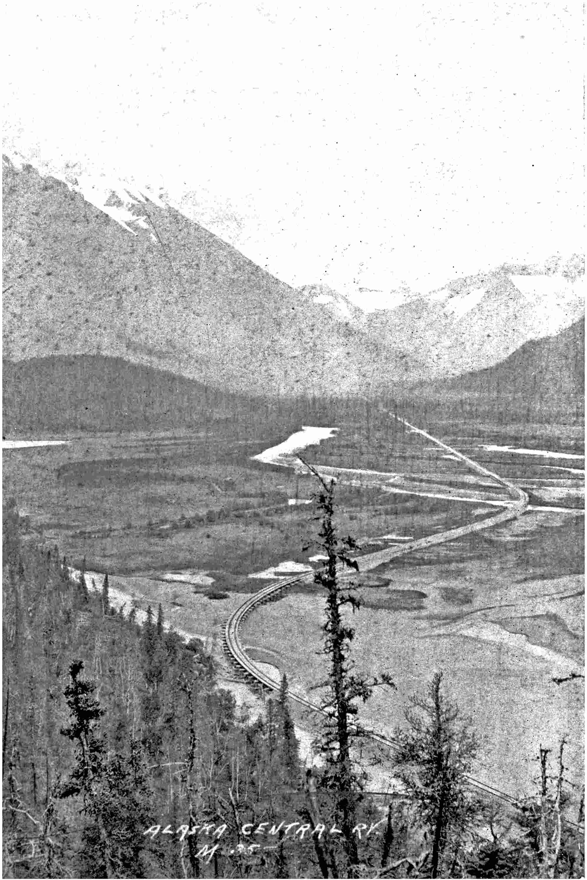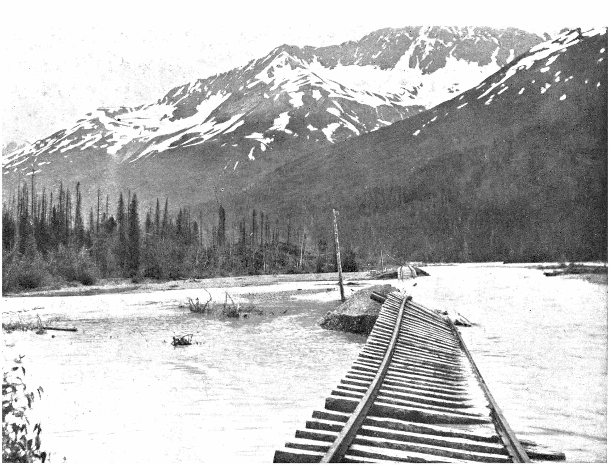 | The dismal tract of swamp and river through which the Alaskan Central Railway makes its way | 107 |
