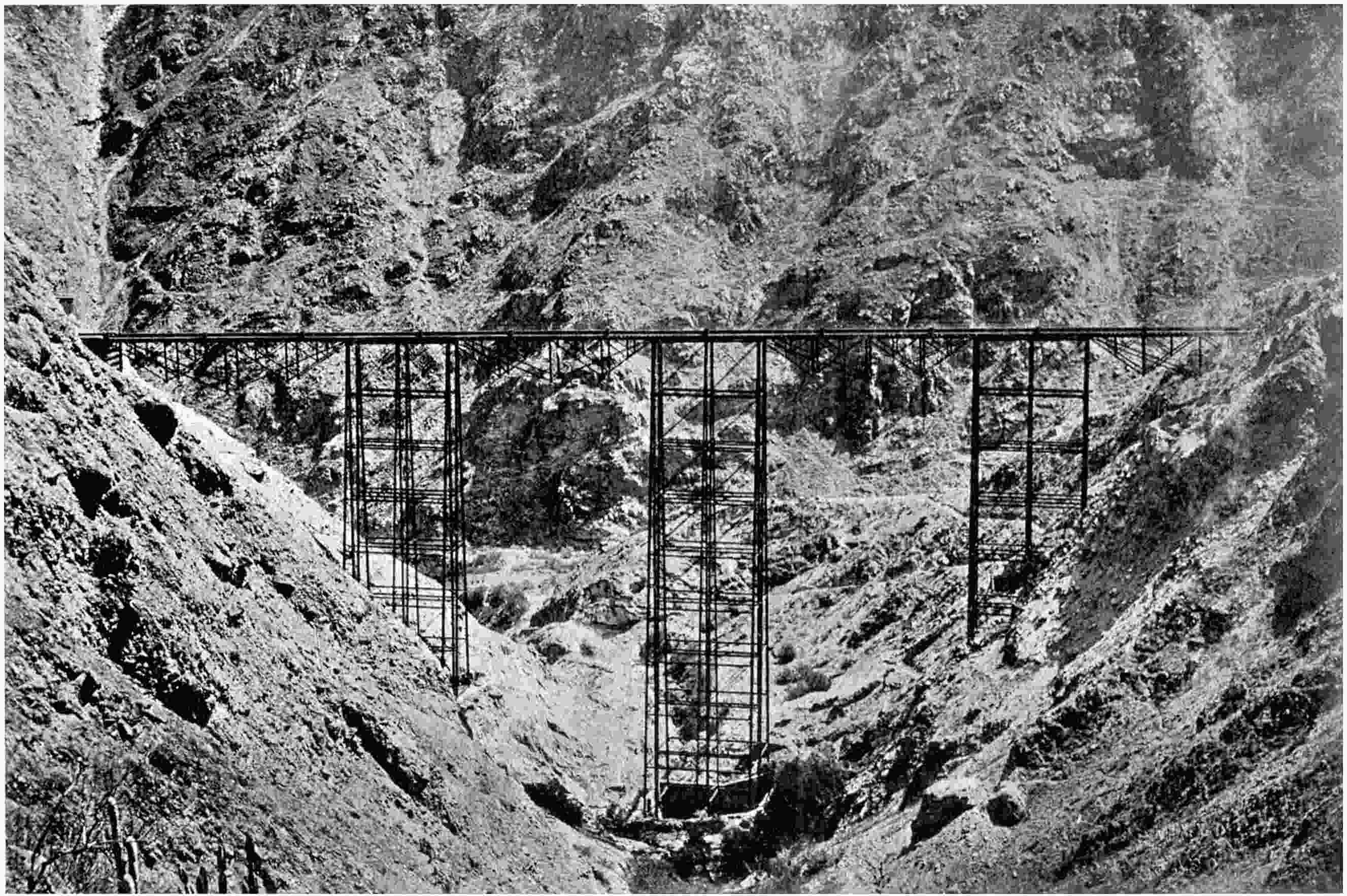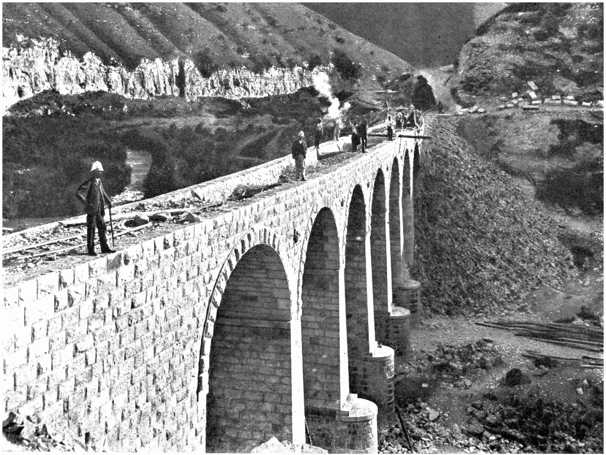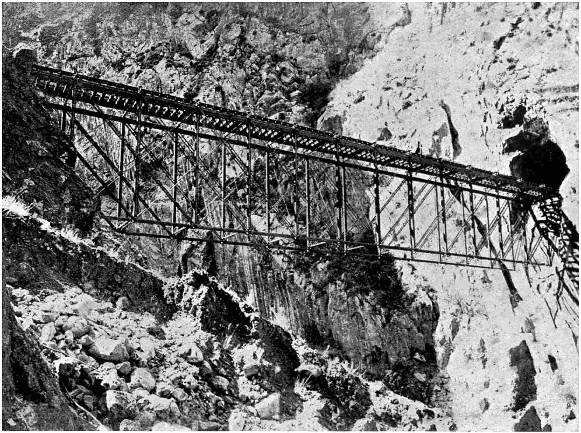 | The Pecos Viaduct on the “Sunset” Railway, the highest structure in the United States, the track being 321 feet above the water below | 24 |