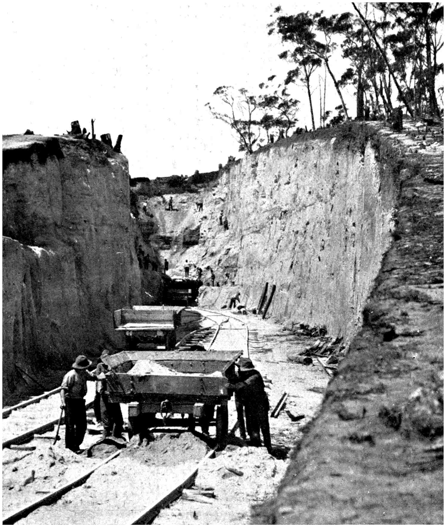 | Driving a cutting 100 feet deep by the aid of dynamite and steam shovels through slate on the Delaware, Lackawanna and Western Railway, U.S.A. | 7 |