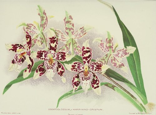 Several artificial hybrids of Catt. guttata Leopoldii have been raised. By alliance with Catt. Dowiana it produces Catt. Chamberlainiana; with Catt. superba, Feuillata; with Catt. Hardyana, Fowlerii; with Catt. Loddigesii, Gandii; with Catt. Mendelii, Harrisii; with Laelio-Cattleya Marion,[Pg 9] C. H. Harrington; with Catt. quadricolor, Mitchelii; with Catt. Warcewiczii, Atalanta. Catt. Victoria Regina also is assumed to be a natural hybrid of Leopoldii with Catt. labiata. There may be other crosses probably, since no official record of Hybridisation exists as yet. Curiously enough, however, no one seems to have mated Cattleya Leopoldii with Lælia purpurata so far as I can learn. Thus it is not yet proved that L. elegans sprang from that alliance.