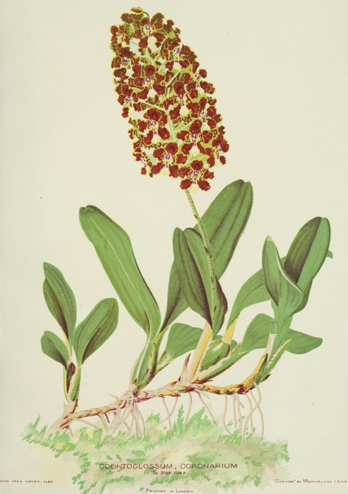 ‘But from the beginning of things until this century, until this generation, one might almost say—civilised man could not enjoy the boon.... We may fancy the delight of the Greeks and the rivalry of millionaires at Rome had these flowers been known. “The Ancients” were by no means unskilful in horticulture—witness that astonishing report of the display at the coronation of Ptolemy Philadelphus, given by Athenaeus. But of course they could not have known how to begin growing orchids, even though they obtained them—I speak of epiphytes and foreign species, naturally. From the date of the Creation—which we need not fix—till the end of the Eighteenth Century, ships were not fast enough to convey them alive; a fact not deplorable since they would have been killed forthwith on landing.