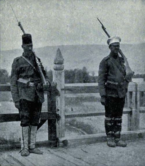 The Turkish guard would certainly be on the watch for the band, so the leader decided to cross the border close to one of the smaller posts, where, he judged, the patrols would be less active, not expecting such audacity. He selected a passing place within earshot of a blockhouse, which could be seen plainly in the moonlight. A sentinel sat in Turkish fashion before the door, wailing a doleful dirge through his nose, a way Turkish sentinels have. To the time of the Turk’s music the insurgent band filed over the border, guns loaded and cocked, bayonets fixed, and arrived in Kustendil, whence to Sofia their march was a triumphant procession.