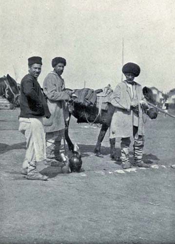 The man with the bad eye proved to be a character with a most romantic past, a Continental count who had fallen from his high estate, but still a man of good taste—particularly for food. He, too, had been a soldier; he had commanded a company of cavalry in the Russo-Turkish war, and could still, in his age, ride me out of my saddle. But he was a Jew, and wisely, as time has proved, did not return after the war to the land of his birth. He was not a dragoman by profession, there was nothing servile about him. An English correspondent would not have tolerated his patronage. But in America, a man and his master, and a master and his man, equal pretty much the same thing; and we have heard that things which are equal to the same thing are equal to each other. No serious class prejudices hampered me, and I was content to permit my man to be my companion in a land where I could communicate direct with so few.
