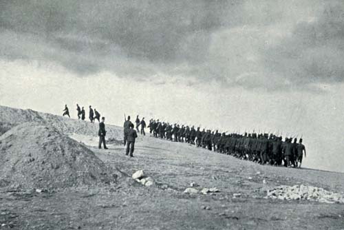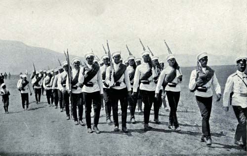 At nightfall of the day after the fight the band resumed their march. The insurgents filed out of the woods in a long, single line, the local guide leading, and made their way to the edge of the next revolutionary district, where the chief thereof was awaiting them. They replenished their spent supply of ammunition from the secret stores of the villagers in the mountains, and proceeded on their way. Their course now was to the north-east, and they made tracks for their destination as straight as the Turkish[291] camps and patrols would permit, arriving without further adventure at the friendly frontier.