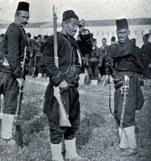 The first day was uneventful, but as the second began to dawn on the heights one of the pickets, a[285] boy of fourteen, rushed into camp with the news that the Turks were entering the little valley in which the insurgents were camped. The boy had hardly delivered this news when a picket from the summit of the ridge to the east rushed in breathless, and announced that soldiers were climbing the slope on his side. And from various other points soon came sentries with similar information.
