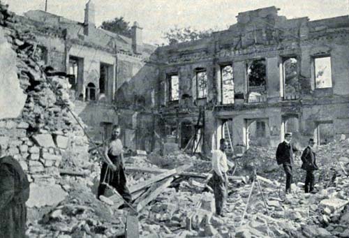 The Greek church was on the market place among the shops. The Turks who were not fortunate enough to get into the church went to work on the stores. Door after door was cut through with adzes, the shops rifled of their contents, and then ignited as the church had been. Two hundred and three shops and three hundred and sixty-six private houses were pillaged and burned, and six hundred others were simply rifled—because the petroleum gave out.
