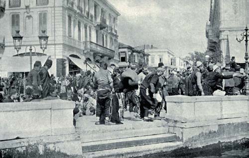[8] Not all the munitions of war secretly brought into the country came through Bulgaria. Certain insurgent leaders who spoke Greek without a foreign accent worked in Greece, purchasing arms with the connivance of the Greek authorities under the pretext that they were leaders of Greek bands, hostile to the Bulgarians; and much dynamite was imported through the Turkish Custom-house at Salonica.