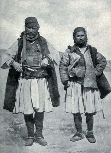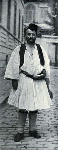 The natives put on their fezzes again, and a delegation of notables bearing a white flag went out to the[270] camp of Bakhtiar Pasha to surrender the town. On their way they were stopped by the soldiers and bashi-bazouks and made to empty their pockets. Further on more Turks, whose rapacity had been less satisfied, demanded the clothes and shoes they wore. Arriving at headquarters of the general, situated on an eminence from which there was a full view of the proceedings, the representative citizens, left with barely cloth to cover their loins, offered a protest along with the surrender. Bakhtiar had their clothes returned to them, and told them he could do nothing with ‘those bashi-bazouks’—though beside him sat Adam Aga, a notorious scoundrel of Prelip, who had brought up the largest detachment of bashi-bazouks, and with whom, subsequently, Bakhtiar is said to have shared the proceeds of the loot.