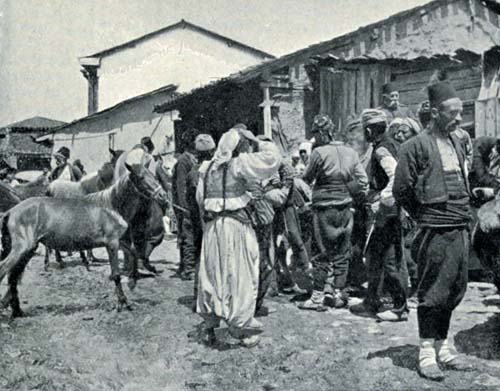 Krushevo, with its thrifty Wallachian population, was the wealthiest city in Macedonia. It was not many hours’ ride from the railway terminus at Monastir, and, for the purpose of making this journey, many of the Vlachs possessed private carriages. There were pack and draught animals and cattle to the number of many thousands. The Turks appropriated these,[272] drove off the cattle in herds, and loaded the spoils from the stores and homes in the carriages and carts, and on the backs of the Vlachs’ pack-animals. Seven thousand animals were taken by the Turks—and not one went back.