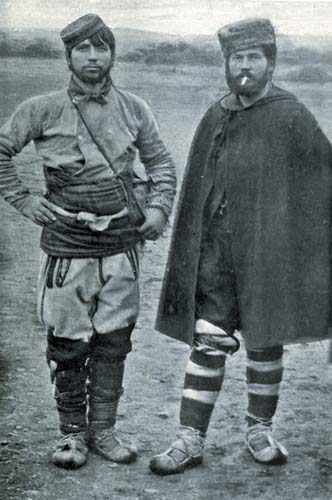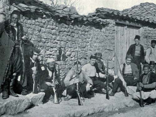 After the conference on Bigla Dagh, the voivodas, with their bands, separated, bound in different directions on various missions. Boris Sarafoff, with ninety men, dropped south from Bigla Dagh around Florina to convey news of the revolution’s end to certain other bands, and to gather arms from the peasants. The band were destined ultimately to return to Bulgaria, 120 miles away; but they were doomed to cover several times this distance, spending thirty-four days, on the march back to the free land.