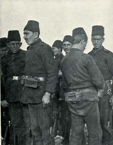 The band were occupying the base of a narrow ‘dip,’ one end of which was closed by an insurmountable wall of sheer stone, and the other now blocked by probably two hundred Turkish soldiers. Another body of Turks, perhaps three hundred strong, were already coming over one of the two mountain crests. The other slope—the only way of escape open to the band—was so steep as to be impossible of ascent except by aid of the low bush that covered it. The surprise was complete, and the trap was tight.