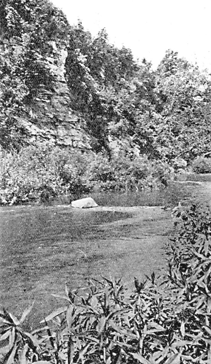 When morning broke, little wisps of mist, like curls of white smoke, were drifting on the surface of the river as it journeyed through the canyon of cliffs and trees, dark as the walls of night, toward the valley where the widening sea of day was slowly changing from gray to rosy gold. Caught in a cove where the water was still these little wisps gathered together and crept in folds up the face of the cliff, as if they fain would climb to the very top where the red cedars ran like a row of battlements, twisting their stunted trunks over the brink and hanging their dark foliage in a fringe eighty feet above the water. But the cliff had for centuries defied all climbers, though it gave footing here and there to a few friendly plants. At its base the starry-rayed leaf-cup shed a heavy scent in the stillness of the moist morning. Higher, at the entrance to a little cave, the aromatic spikenard, with purple[Pg 58] stems and big leaves, stood like a sentinel. From crannies in the limestone wall the harebell hung, its last flowers faded, but its foliage still delicately beautiful, like the tresses of some wraith of the river, clinging to the grim old cliff, and waiting, like Andromeda, for a Perseus. Tiny blue-green leaves of the cliff-brake, strung on slender, shining stems, contrasted their delicate grace with the ruggedness of the old cliff. Still higher, where a little more moisture trickled down from the wooded ridge above, the walking fern climbed step by step, patiently pausing to take new footings by sending out roots from the end of each long, pointed leaf. Near the top of the cliff, where the red cedars gave some shade, little communities of bulb-bearing ferns and of polypody displayed their exquisite fronds, as welcome in a world of beauty as smiles on a mother's face. Mosses and lichens grew here and there, staining the face of the old cliff gray, green and yellow. These tiny ferns and mosses, each drawing the sort of sustenance it needed from the layers of the limestone, seemed greater than the mountain of rock. Imposing and spectacular,[Pg 59] yet the rock was dead,—the mausoleum for countless forms of the old life that ceased to be in ages long forgotten. These fairy forms that sprang from it were the beginnings of the new life, the better era, the cycle of the future, living, breathing, almost sentient things, transforming the stubborn stone into beauty of color and form, into faith that moves mountains and hope that makes this hour the center of all eternity. For them the river had been patiently working through the centuries, scoring its channel just a little deeper, cutting down ever so little each year the face of the cliff. Eternity stretched backward to the time when the little stream running between the thin edges of the melting ice sheets at the top of the high plateau first began to cut the channel and scarp this mighty cliff; still backward through untold ages to the time when the lowest layer of limestone in the cliff was only soft sediment on the shore of a summer sea. Eternity stretched forward, also, to the time when this perpendicular wall shall have been worn to a gentle slope, clad with luxuriant verdure, and adorned, perchance, with fairer flowers[Pg 60] than any which earth now knows; still forward through other untold ages to the time when all earth's fires shall have cooled; when wind, rain, storm and flood, shall have carried even the slope to the sea and made this planet a plain like Mars. Now is the golden age; this hour is the center of eternity.
