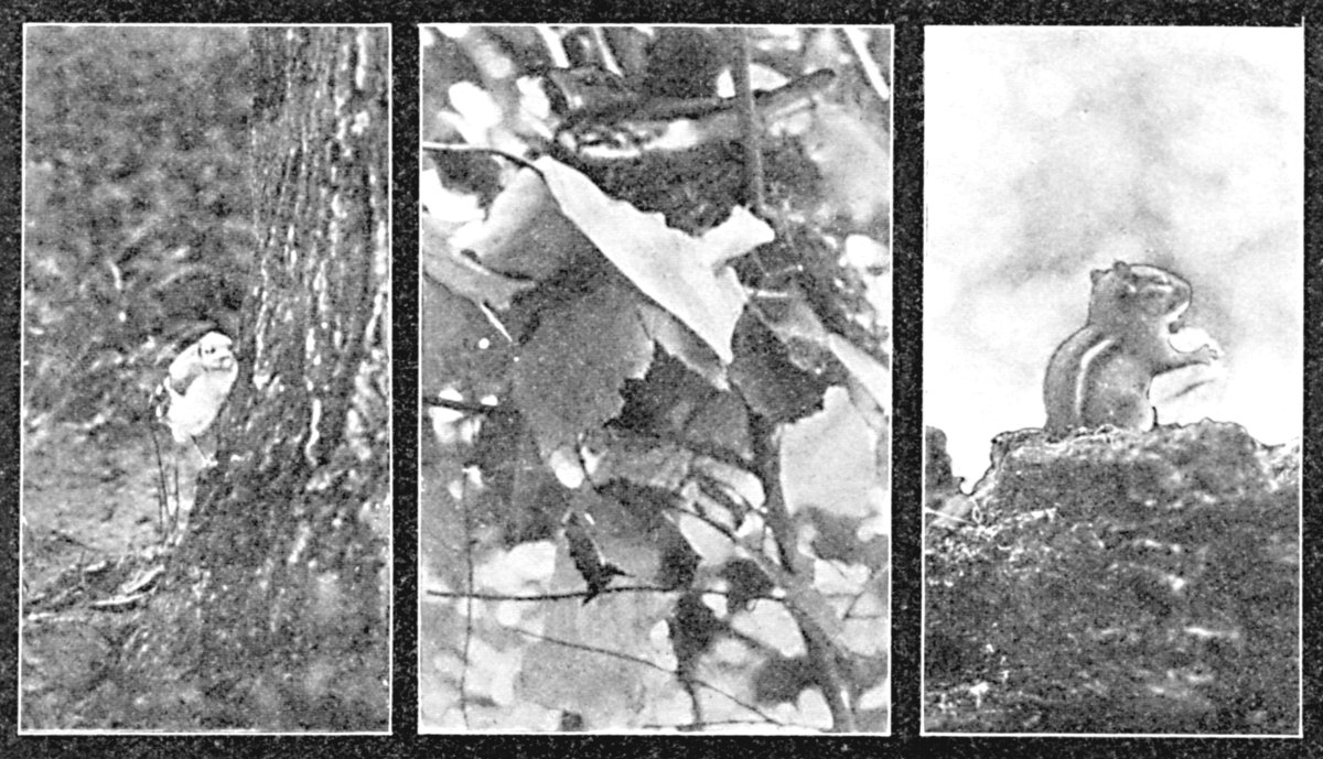 At length the chipmunk makes a dash for the thicket ten feet away and his "chip, chip," rings out excitedly as he reaches the friendly shelter.