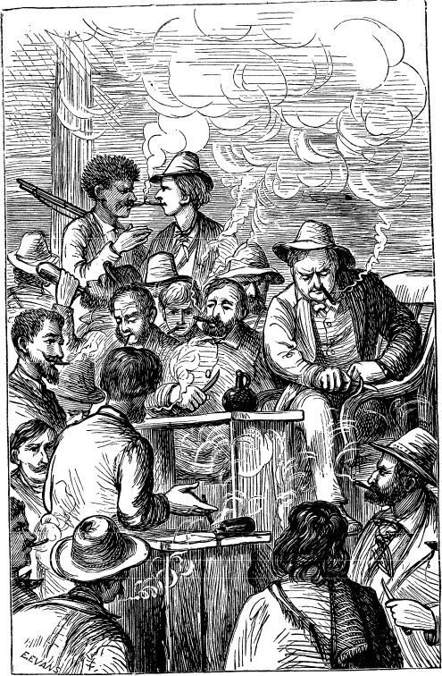 For many weeks it was a strange and busy scene. The Prince Seravalle had, during his former residence with the Shoshones, been admitted into their tribe as a warrior and a chief, and now the Indians flocked from the interior to welcome their pale-faced chief, who had not forgotten his red children. They helped our party to unload the vessel, provided us with game of all kinds, and under the directions of the carpenter, they soon built a large warehouse to protect our goods and implements from the effect of the weather.