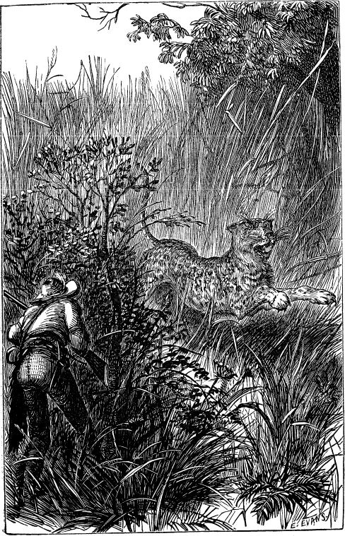 Once more I was awakened, but this time there was no delusion of the senses, for I felt a heavy pressure on my chest. I opened my eyes, and could scarcely refrain from crying out, when I perceived that the weight which had thus disturbed my sleep was nothing less than the hind paw of a large puma. There he stood, his back turned to me, and seeming to watch with great avidity a deer-shoulder suspended above his head. My feelings at that moment were anything but pleasant; I felt my heart beating high; the smallest nervous movement, which perhaps I could not control, would divert the attention of the animal, whose claws would then immediately enter my flesh.
