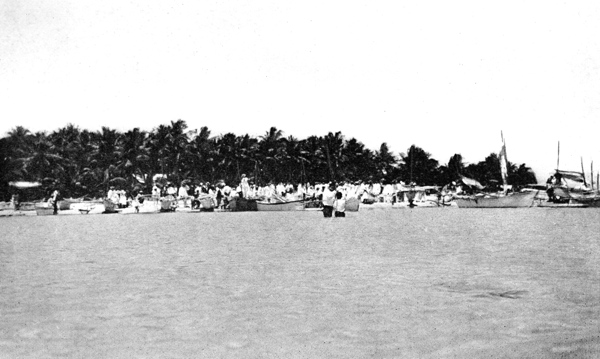 Nohea and two elders dug the grave. About four feet deep, it was wide enough to rest the huge body in the glistening coffin. This was borne on the shoulders of six young men, nephews of Mapuhi, and in the cortège were all of the Takaroans of age. Solemnly and silently they marched down the road. All who owned black garments wore them, and others were in white trousers, some with and others without shirts, but all treading ceremoniously with bowed heads and serious faces. Nohea was the leader, carrying the large Book of Mormon from the temple, and at the grave he read from it verses about the resurrection, the near approach of the coming of Christ, and Mapuhi’s being quiet in the grave until the trumpet rang for the assembling of the just, the unjust on opposite sides for judgment.