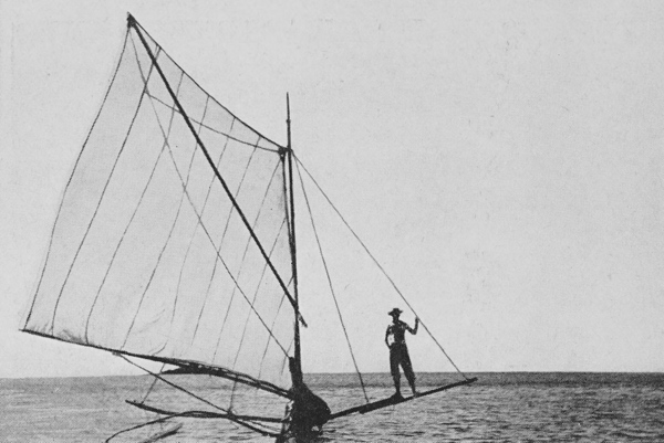 He had heard in the still air the faint slap of her canvas as she jibed, I thought, but that could not have been, as she was too far away. His awareness was not of the ear or eyes, but something different—the keenness of the conscious and unconscious, which had preserved the Paumotuan race in an environment which had meant starvation and death to any other people.