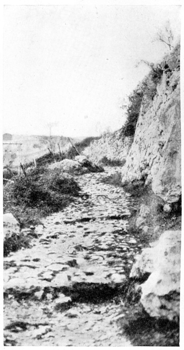 In so far as it evades all towns it is unlike the usual great highway. It passes through no cobbled, wondering street; breaks into no quiet, fountained square; crosses no market-place alive with chattering folk; receives no blessing from the shadow of a church. Nowhere is its coming heralded by an avenue of obsequious trees, it forces its way through no vaulted gateway, it lingers by no village green, it knows not the scent of a garden nor the luscious green of a cultivated field. Neither the farmer’s cart nor the lumbering diligence will be met with on this unamiable road, nor will its quiet be disturbed by the patter of a flock of sheep nor by a company of merry villagers on their way to the fair.