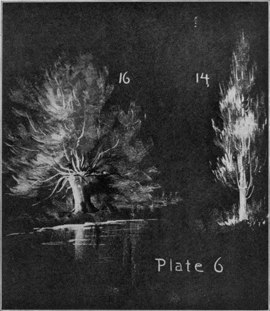 It is not the greatest quantity of chalk which gives the best drawing any more than the greatest quantity of pigment in our[Pg 14] color work which gives the best painting. Represent trunk and branches as in No. 13.