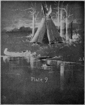 For instance, make a drawing of the wigwam and canoe, adding some of the tree sketches upon which we have previously worked or simply indicating a few tree trunks.