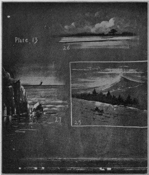 [Pg 23]Lessons in geography often require quick illustration. The school building may not be well located for this study, or the teacher is not fortunate enough to have a good series of pictures for the use of his class. In such cases, or in any case, even when he has other material, blackboard illustration will help the children. No. 25, No. 26, and No. 27, Plate 13, suggests useful sketches.