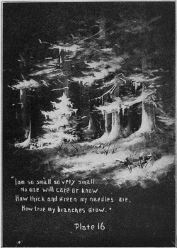 The children told of the woodman who took his axe and started in search of a tree for his baby at home; of the delight of the little tree at being chosen, and of the joy of the little daughter when she saw it arrayed and holding her Christmas gifts. The accompanying drawing will serve as an illustration for this story or as a sketch of the forest in winter.