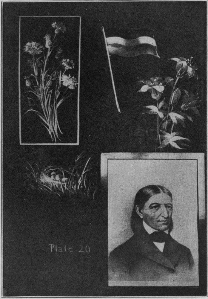 Plate 20. This was taken from a Kindergarten room in which the children were celebrating Froebel’s birthday. The drawings upon this plate were made by the use of the simple strokes given or suggested in the plates shown in the first part of this article.