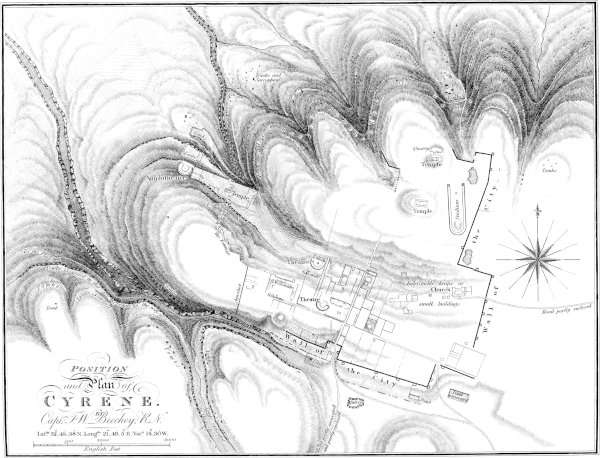 | Observations on the Position of Ras Sem — Remarks of Bruce connected with this place — Difficulty of reconciling the several positions assigned to it — Extravagant Stories related of its Petrifactions, supposed to be those of Human Beings — Fallacy of these Statements as recorded by Shaw — Report of Petrified Remains at Ghirza made to Captain Smyth by Mukni (Bey, or Sultan, of Fezzan) during the progress of his Excavations at Lebda — Journey of Captain Smyth in search of the objects described to him — Description of the actual Remains at Ghirza — Monumental Obelisk discovered there, and Tombs, combining a mixture of the Egyptian and Grecian styles of Architecture — Indifferent Taste and Execution of these Remains — Veneration in which they are held by Mahometans of all classes, who suppose them to be Petrified Human Beings of their own persuasion — Geographic Position of Ghirza determined by Captain Smyth — Further Observations on the Remains at Apollonia — Return of our party to Cyrene — Account of that City continued | 501 |