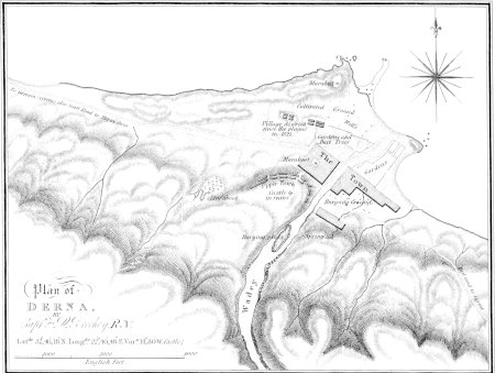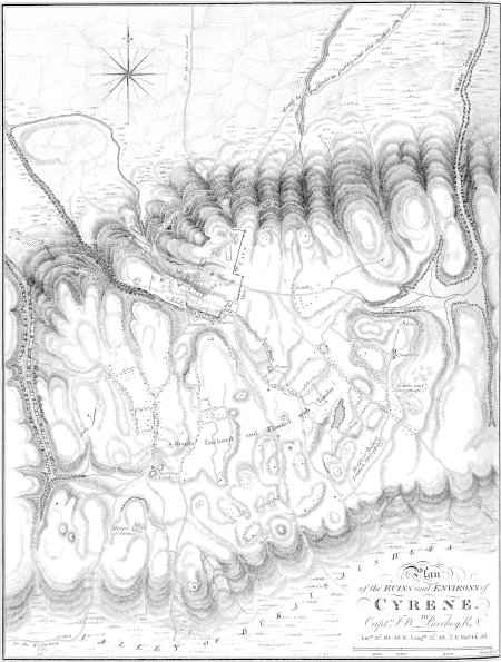 | Departure from Ptolemeta — Romantic and Picturesque Appearance of the Road — Luxuriant Vegetation which adorned it — Arrive at the Summit of the first Range — Bedouin Tents on the Plain above — Pleasing Manners of their Inhabitants — Character of the Scenery[xv] on the Summit of the Lower Range — Beauty of the Route continues — Arrive at the Plain of Merge — Character and Position of the Plain — Our Camel-Drivers refuse to proceed — Artful Conduct of Abou-Bukra — Appeal to Bey Halil — Projected Mission to Derna — Abou-Bukra comes to Terms, and brings his Camels for the Journey — Pools of Fresh Water collected in the Plain of Merge — Use made of them by the Arabs — Prevalence of a Virulent Cutaneous Disease among the Arab Tribes of Merge and its Neighbourhood — Remains of a Town at one extremity of the Plain — Remarks on the District and City of Barca — Testimonies of Strabo, Pliny, Ptolemy, and Scylax, respecting the Port of Barca — Remarks on the Position of the City of that Name — Arab Accounts of Barca — Edrisi, Abulfeda, &c. — Unsatisfactory Nature of the Accounts in Question — Mode of reconciling the Arab Accounts of Barca with those of Scylax — Suggested Position of the Ancient City — Peculiarity of Soil attributed to Barca — Observations on its Produce and Resources — State of Barca under the Arabs — Decay of the Ancient City after the building of Ptolemais on the Site of its Port — The Barcæans remarkable for their Skill in the Management of Horses and Chariots — Their Country formerly celebrated for its excellent Breed of Horses — Degeneracy of the present Breed — Account of Barca by Herodotus — Other Accounts of its Origin — Siege and Plunder of the City by the Persians under Amasis — Subsequent state of the City till the building of Ptolemais | 386 |