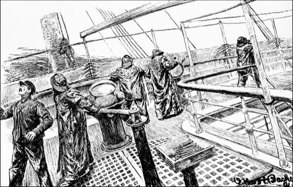Has Steam Ruined the Genuine Sailors of Story and Song?—Hauling a Liner out of the Liverpool Docks—The Traits of Master-mariners—Education of Junior Officers—A Fire Drill—Stowing the Cargo—Down the Channel in a Fog—The Routine Life at Sea—The Trials of Keeping Watch—A Bo’s’n’s Right to Bluster—Steering by Steam—Scrubbing the Decks in the Middle Watches—Formalities of Inspection—The Magic Domain of the Engine-room—Picturesqueness of the Stoke-hole—Messes of the Crew—The Noon Observation—Life among the Cabin Passengers—Boat Drill—Pleasures toward the End of the Voyage—The Concert—Scenes in the Smoking-room—Wagers on the Pilot-boat Number—Fire Island Light, and the End of the Voyage. |