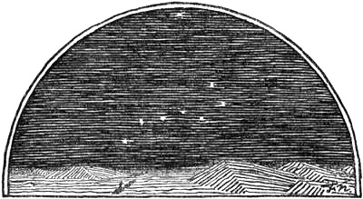 Long before people knew whether there were lands and seas far in the north, those who studied the stars had observed that there were some bodies in the northern sky which never set, and that there was a point in the vault of heaven which[Pg 8] never changed its place. In time, they also found that, as they moved northwards, the circle surrounding the stars that were always visible became larger, and they saw that these in their daily movements described orbits about the fixed point or pole of the heavens. The ancient Chaldeans had already found this out. From this observation it was but a short step to the deduction that the earth could not be flat, as the popular idea made it, but must in one way or another be spherical, and that if one went far enough to the north, these stars would be right over one’s head. To the Greeks a circle drawn through the constellation of the Great Bear, which they called “Arktos,” formed the limit of the stars that were always visible. This limit was therefore called the Bear’s circle, or the “Arctic Circle,” and thus this designation for the northernmost regions of the earth is derived from the sky.