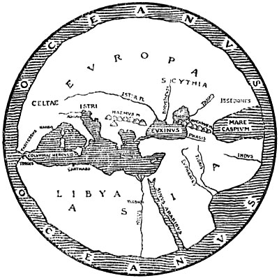 He thus left the question undetermined, because, with the sound cool-headedness of the inquirer, which made him in a sense the founder of physical geography, he trusted to certain observations rather than to uncertain speculations; and therefore he maintained that the geographers of the Ionian school had not provided adequate proofs that the world was really surrounded by sea on all sides. But nevertheless, it was, perhaps, his final opinion that the earth’s disc swam like an island in Oceanus.