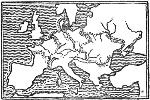 The learned world of early antiquity had nothing but a vague premonition of the North. Along the routes of traffic commercial relations were established at a very early time with the northern lands. At first these ran perhaps along the rivers of Russia and Eastern Germany to the Baltic, afterwards along the rivers of Central Europe as well. But the information which reached the Mediterranean peoples by these routes had to go through many intermediaries with various languages, and for this reason it long remained vague and uncertain.