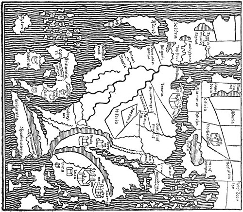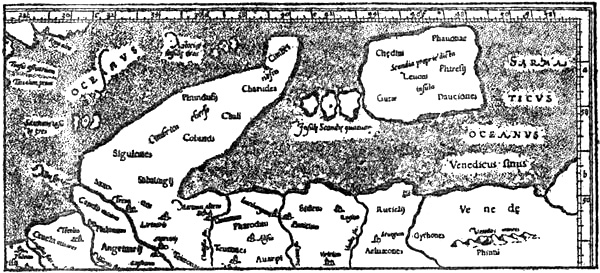 [305] This idea, that the land became broader towards the south, and the coast there turned eastward, must be the same that we meet with again in Icelandic geographies of the fourteenth and fifteenth centuries, where Wineland is thought to be connected with Africa (see later).