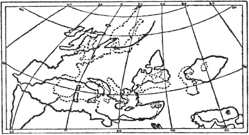 What took place in those long ages is still hidden from us. We only know that ice-age followed ice-age, covering Northern Europe, and to some extent Asia and North America as well, with vast glaciers which obliterated all traces of early human habitation of those regions. Between these ice-ages occurred warmer periods, when men once more made their way northward, to be again driven out by the next advance of the ice-sheet. There are many signs that the human northward migration after the last ice-age, in any case in large districts of Europe, followed fairly close upon the gradual shrinking of the boundary of the inland ice towards the interior of Scandinavia, where the ice-sheath held out longest.