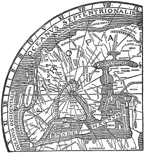 The conception of the earth’s form and of its uttermost limits was thus by no means consistent, and on some points it was contradictory. We must always, and especially in dealing with past times, distinguish between the views of the scientific world and those of ordinary people, two aspects which were often hopelessly mixed together. And again in the scientific[Pg 13] world we must distinguish between the mathematical-physical geographers and the historical, since the latter dealt more with descriptions and were apt to follow accounts and legends rather than what was taught by physical observations.